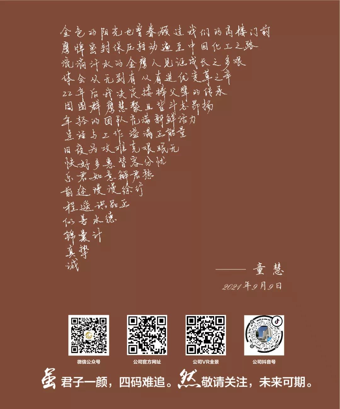 沖鋒的號角再次吹響,我們又一次出發向前。未來,我們要立足長遠,把握當前,堅定信心,我們將以“有幸金鷹、無悔金鷹”的情懷,以“功成必定有我”的使命擔當,只爭朝夕,不負韶華,共同續寫金鷹下一個二十年的理想與榮光!