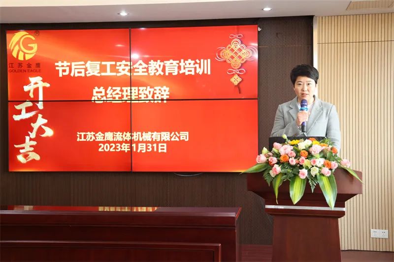 在會議上總經(jīng)理作復(fù)工動員致辭,童總經(jīng)理代表公司向在過去一年辛苦付出的金鷹人送去新年的祝福,并強調(diào)了快速全面復(fù)工的重要性、迫切性、責(zé)任性,保證人到崗、心在崗,馬上行動,身心一致地投入各項工作中。